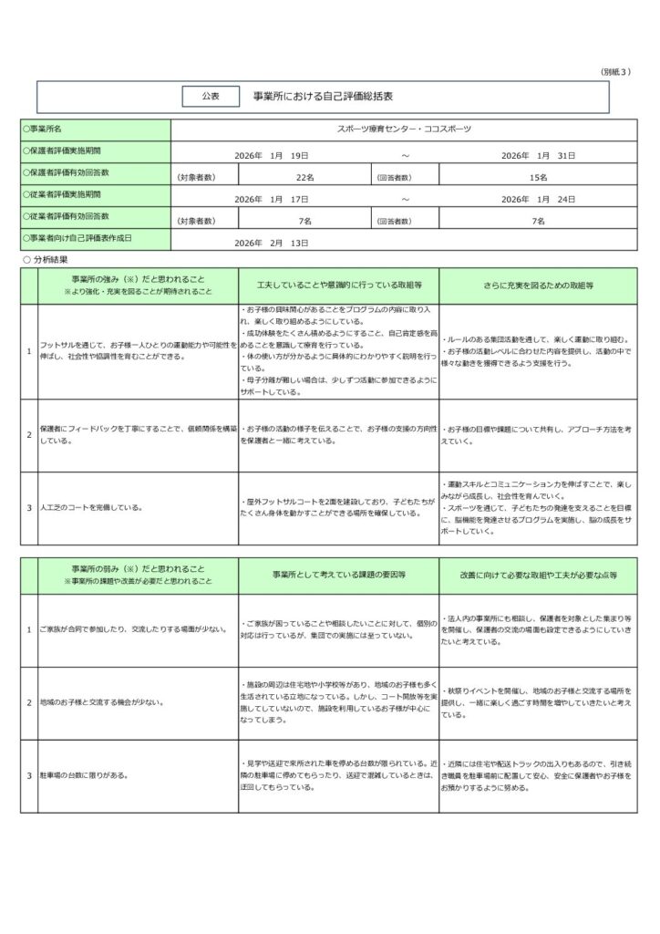 ◆放課後等デイサービス自己評価公表http://www.cocosports.jp/wp-content/uploads/2026/02/2025年度自己評価(ココスポーツ)放課後等デイサービス-1.pdf